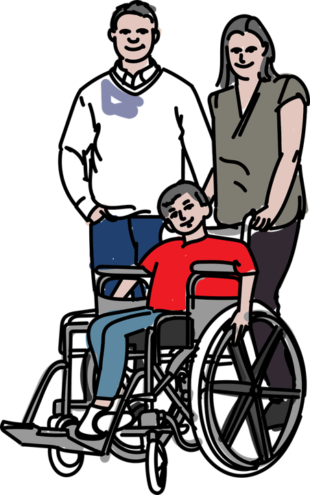 Cartoon of a boy in a wheelchair with his family by PaliGraficas via Pixabay.com