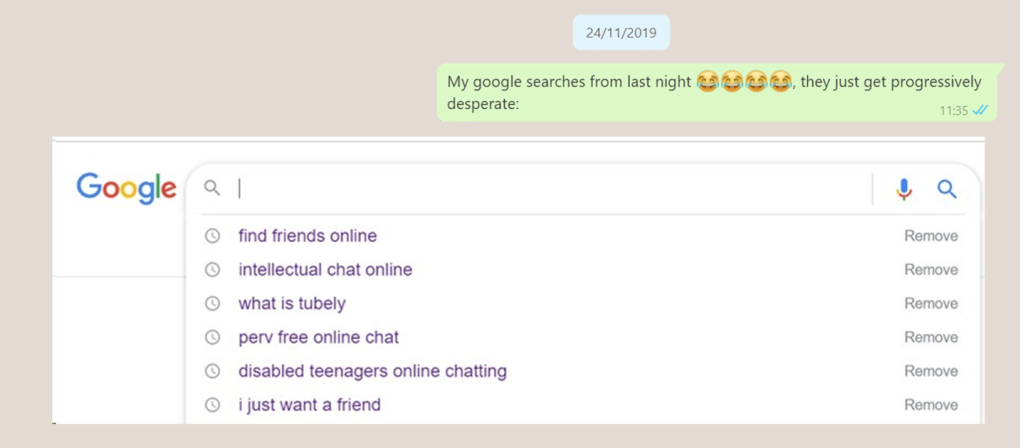 Now, I’m surrounded by a fantastic friend group who I’m sure would let me in, but I’m still so used to hiding that I’m having trouble opening up to them. My past experiences at school have scarred me so much that I freak out during most social interactions or just stay quiet, but I definitely don’t feel as lonely anymore. Loneliness is still something that I struggle with quite a lot but I feel as if I’m just starting to re-discover who I am a little bit more after so long of burying it. Now, I have: