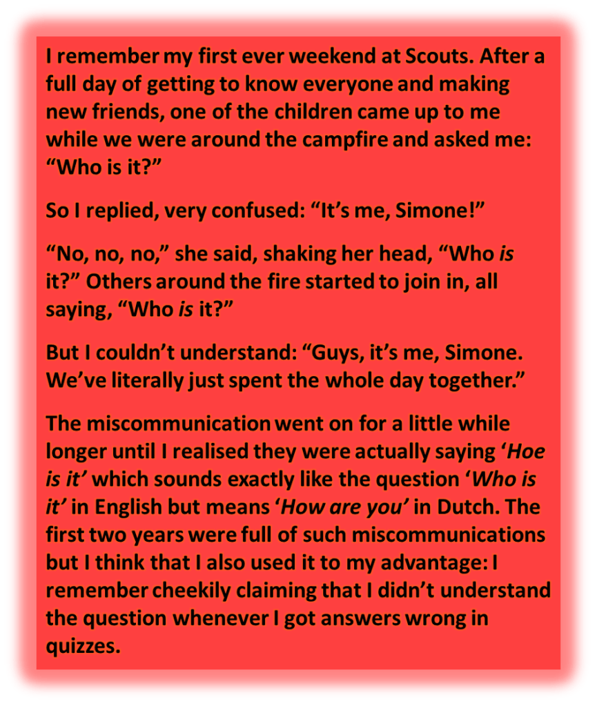 I used to go to Scouts for disabled children. I spent a total of eight years there (we met up once every month from Saturday morning to Sunday evening and once a year for a week during the holiday for Summer camp) so it sort of felt like a home away from home. When I first started going there, I was a child who didn’t know a word of Dutch surrounded by only Dutch-speaking adults and children for a full night and two days so I had to learn it very quickly to be able to keep up. I do owe it to Scouts for almost single-handedly making me fluent in Dutch. I was also the only black person there and therefore had to endure quite a few questions about whether or not I was a boy because of my plaits (braids) and whether or not there was Hagelslag (typical Dutch food) in Africa. But I honestly didn’t mind, I soon found out that I MUCH preferred being the only black and British person in a room rather than the only disabled one.