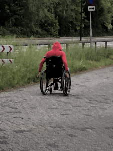 I had quite a few adventures while I was out and about too: people would often stop me and ask me what I was doing, or they told me about their incredibly interesting lives. I once almost jumped into a lake to escape a snarling, snapping dog while I was training, I had a huge spider fall onto me out of a tree, and sometimes I had to ask for help from others when my wheelchair became stuck or I fell out of it. One of my fondest memories from when I was out training, was when two children approached me. They asked me some questions, and then I let them push me for a little while – one handlebar each. They were so adorable, and both so happy to help me out by pushing my wheelchair for a bit. I hope that they were able to learn something from spending a little bit of time with me.