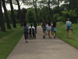The walk went well at first. The path started out fairly smooth and straight so I could keep up with the others and conserve most of my energy for later on. Eventually, my father and I did fall behind on a long, difficult road. So I picked up the speed, and after half an hour, we were able to catch up with the others again. It was funny because the others were walking at a slow walking speed; slow enough for everyone to be able to talk with their friends and play games with each other – but I was sweating and huffing and puffing next to them, working like crazy just to keep up. Due to parental instinct, sometimes my father started pushing my wheelchair when he saw that I was really struggling, but I instantly stopped and threw my brakes on if he did – I was determined to do the whole thing on my own without help.